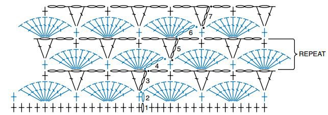 1 р. (ЛС): 1 с. без н. во вторую 2-ю п. от кр., по 1 с. без н., поворот.