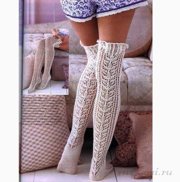 Далее нужно подобрать схему с описанием и сесть за вязание. В результате в гардеробе появится не только модная, а и уникальная вещь, которая будет не только согревать ножки, а радовать рукодельницу приятным внешним видом.